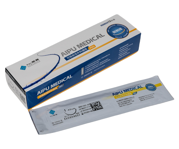 本產品用可吸收性外科縫線制作,縫線是化學合成可吸收材料二氧環已酮(PDO)經拉絲而成,單絲、線體光滑、不易繁殖細菌、抗張強度是絲線的2倍,染成紫色(染料為D&C紫色2號),線徑規格有2#、1#、0#/2-0等。常用0#線。