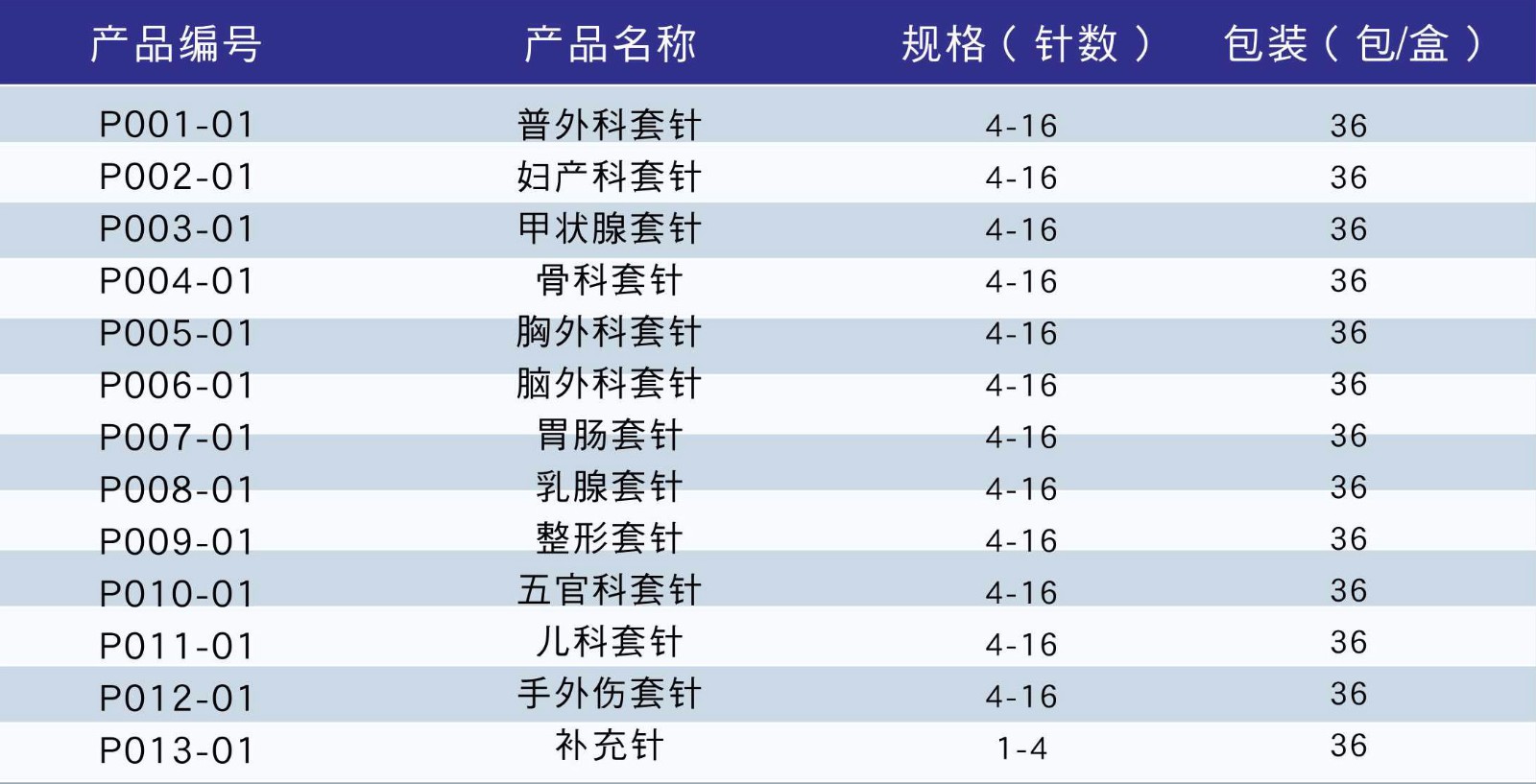 13 | 醫用縫合針(組合套針) | 13支裝 | 36 | ||